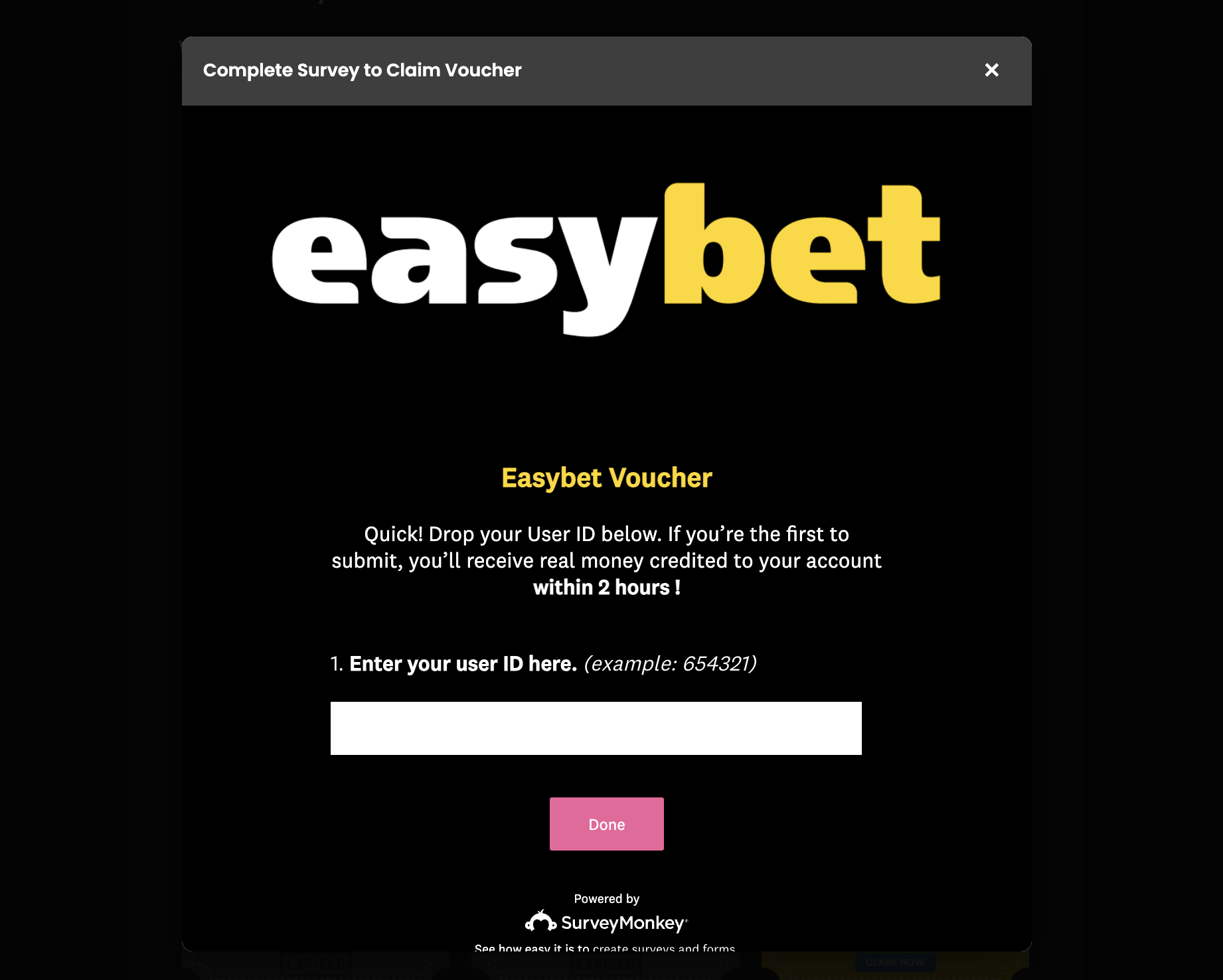 When a voucher card opens, drop your Easybet User ID right away.